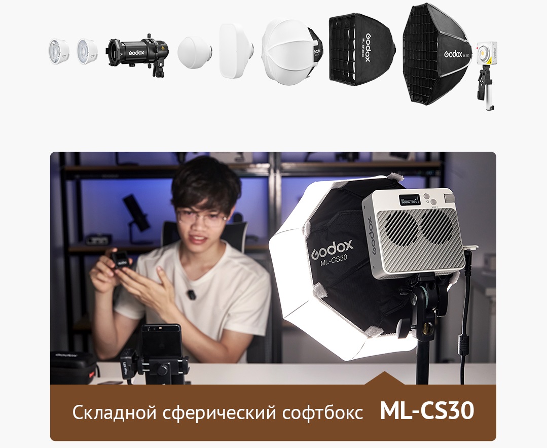 • Совместимость с фирменными и стандартными световыми модификаторами