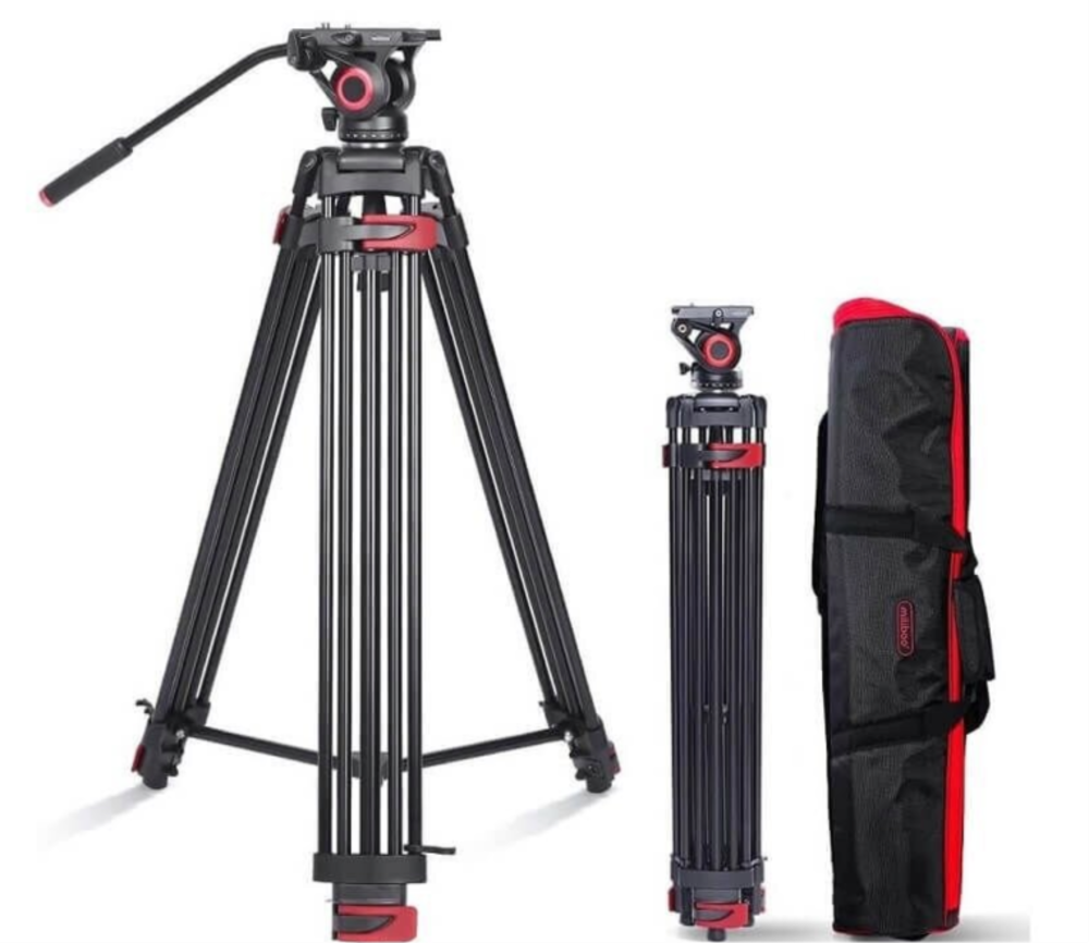 Штатив сочетает в себе надежность алюминиевой конструкции и современную видеоголовку, позволяя работать с различными камерами и аксессуарами.