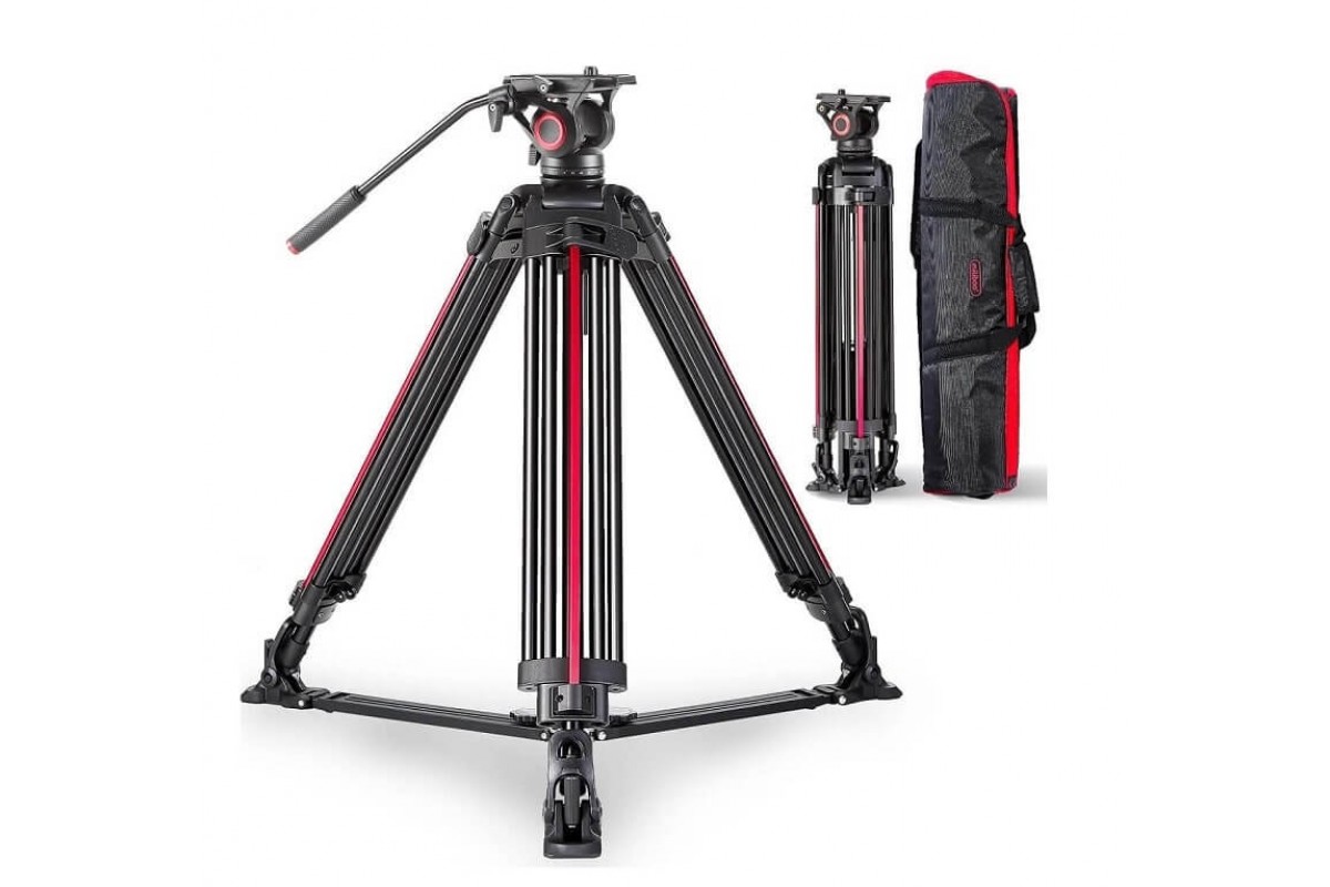 - Штатив изготовлен из алюминиевого сплава, что обеспечивает лёгкость конструкции при высокой жёсткости.