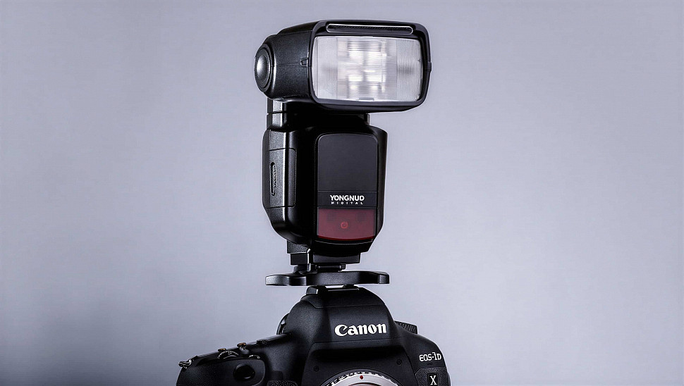 - Накамерные вспышки. Это компактные модели, которые устанавливаются непосредственно на камеру через специальное крепление - «горячий башмак». Они являются отличным вариантом для начинающих фотографов и для съемок в условиях, когда нет времени или возможности использовать внешние осветительные приборы. Вспышка с неподвижной головкой хорошо подойдет для базовых съемок. Для гибкой работы лучше выбирать вспышки с подвижной головкой, такие как Yongnuo Speedlite YN685 II C, которые позволяют направить свет в нужное направление для создания теневого рисунка.