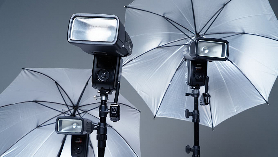 - Зонты. Применяются для рассеивания света и создания более равномерного освещения. Идеальны для съемки на выезде.